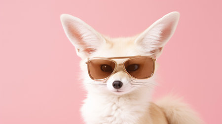 the playful spirit of a fennec fox wearing trendy sunglasses against a mesmerizing pastel background. The adorable fox embodies a sense of coolness and confidence