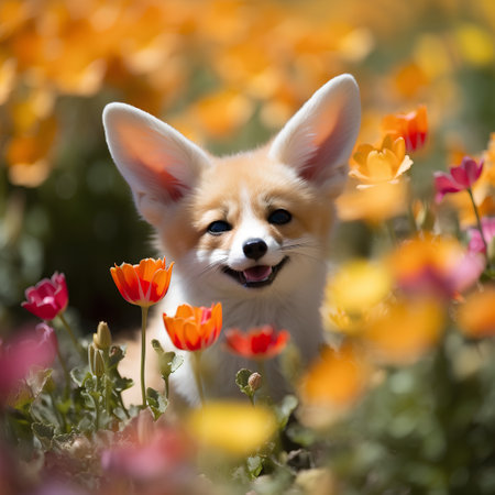 fennec fox in the midst of psychedelic desert plants, created with generative ai