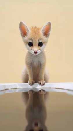 Fennec fox, Vulpes vulpes, single mammal on mirror, UK