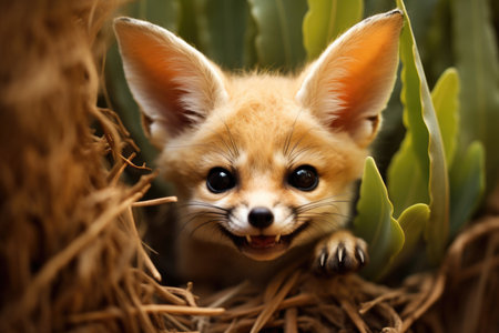 Fennec fox (Vulpes zerda) is a small crepuscular fox native to the deserts of North Africa AI generative