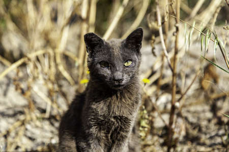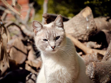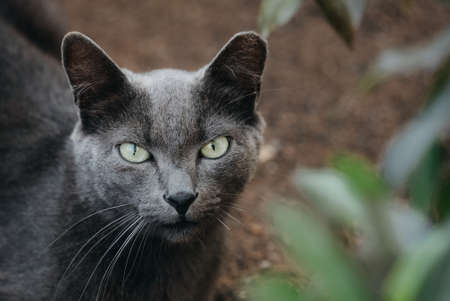 beautiful stray cat portrait looking at the camera