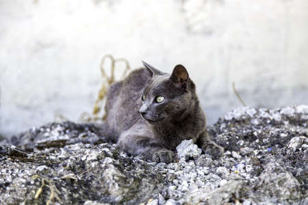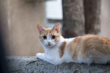View of domestic cat living in the streets of Limassol in Cyprus island