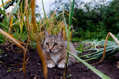 cool moody shoot of a house cat outside. hunting and playing in the wild.