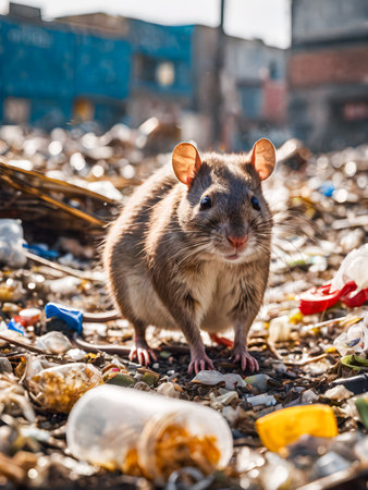 rat on a garbage dump. concept of environmental pollution of the planet