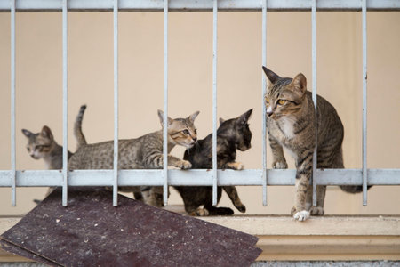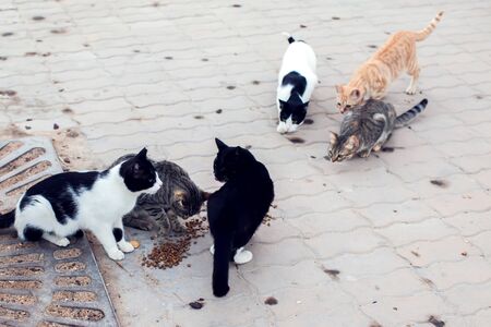 A group of stray cats on the street. Pet protection concept