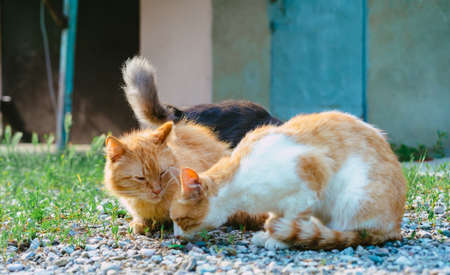 Cats is resting on a sunny day in summer. Street cats in nature. high quality photo