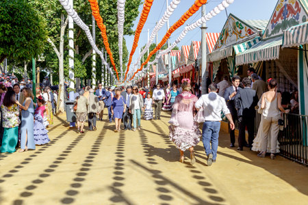 Seville, Spain - May 03, 2017: People taking a walk and enjoying at the Seville's April Fair.