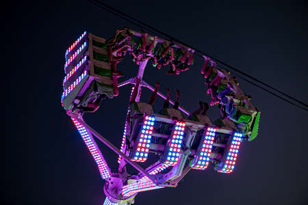 View looking up at the carousel swing ride Carnival Midway at night