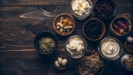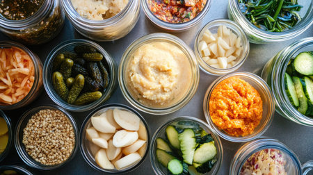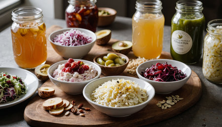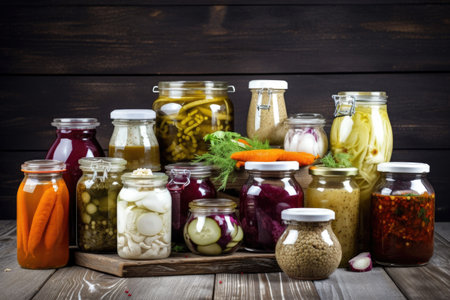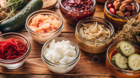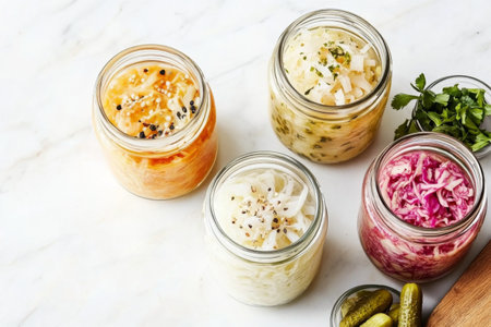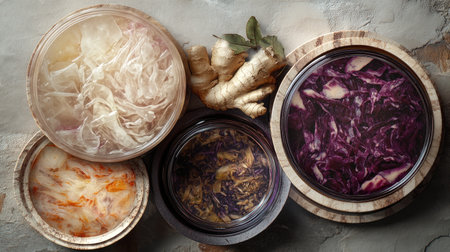 a variety of fermented foods, including sauerkraut, kimchi, and miso, created with generative ai