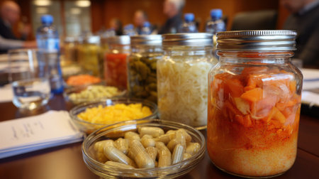 Medium shot capturing a lively gut health workshop focused on incorporating probiotics into daily meals showcasing diverse fermented foods on the table.