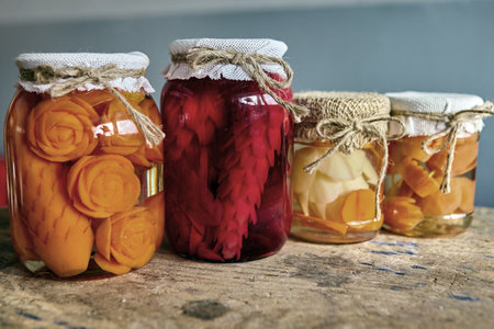 A beautiful arrangement of colorful jars showcasing preserved vegetables. This image captures the essence of homemade preservation and vibrant cooking.
