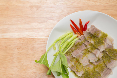 steamed pork with chilli sauce for appetizer or meal time