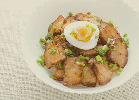 Bowl of rice topped with Braised pork belly and boiled egg, Japanese called Kakuni-don