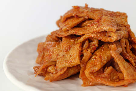 sun dried pork with sauce on plate