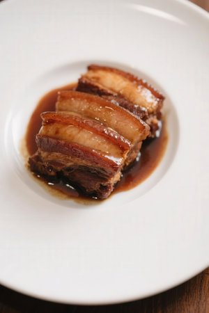 Delicately presented braised pork belly