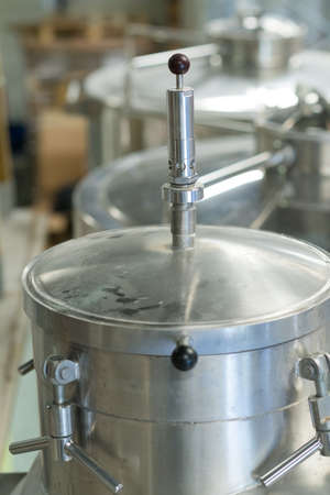 Industrial stainless steel mixing machine. Selective focus.