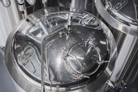 View manhole of fermentation vat in the modern brewery