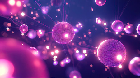 Digital abstract network with glowing spheres interconnected by futuristic lines