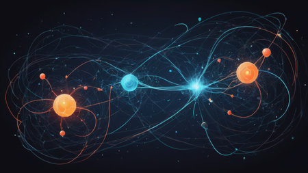 This artistic representation illustrates the concept of quantum entanglement, showing interconnected particles in space.