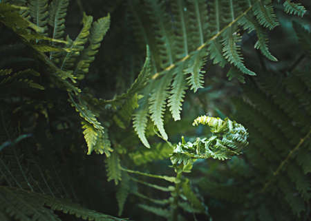 Fern leaves in tropical rainforest. Nature background and texture.