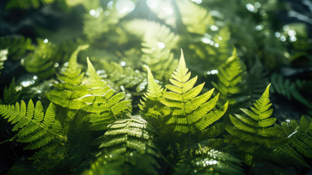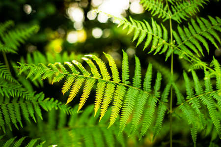 Fern leaves in the sunlight with beautiful bokeh background.