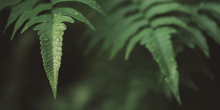 Fern leaves in the forest. Nature background with copy space.