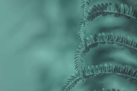 Closeup macro of tropical fern plant shrub leaves and branches. Hipster style wallpaper. Toned with classic blue 2020 color. Natural eco environmental background texture.