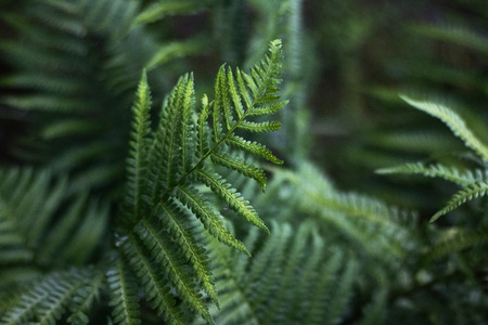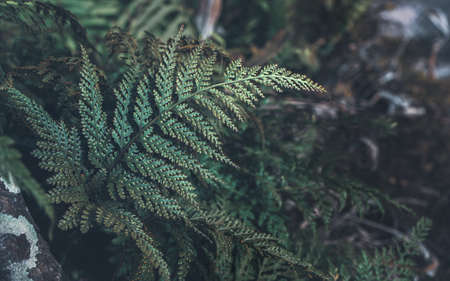 Natural closeup fern leaf agains shallow depth of field for background and environment concept