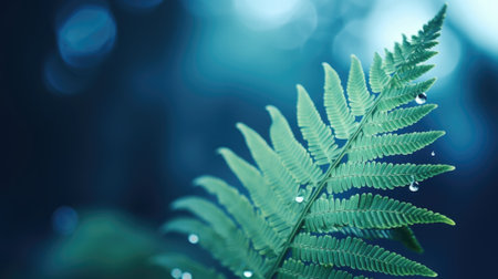 A fern leaf with water droplets on it, AI