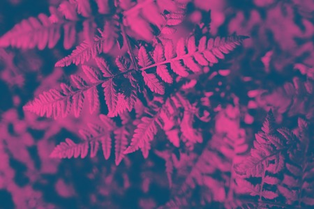 Neon toned fern leaves in nature. Pink, light blue