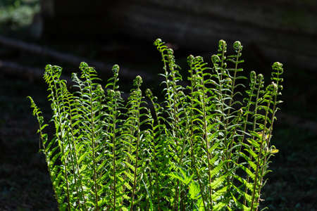 Young opening Fern Fronds growing in the forest. Ferns are a very ancient family of plants: early fern fossils predate the beginning of the Mesozoic era