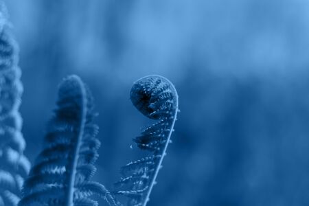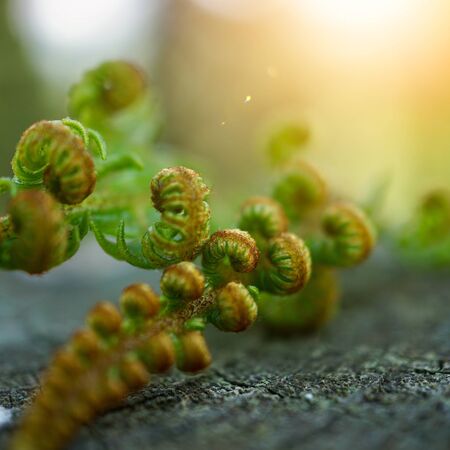 Blooming fern in spring. Beautiful photos and blooming young fern. Discreet, top view. discreet shadows.a magical photo of nature coming to life and a blooming fern.selective focus, artistic blur.