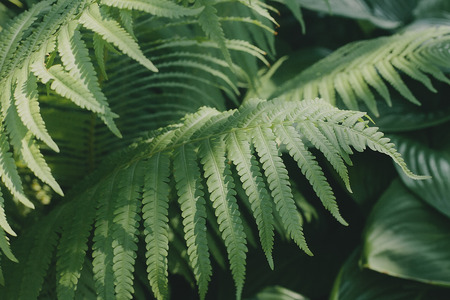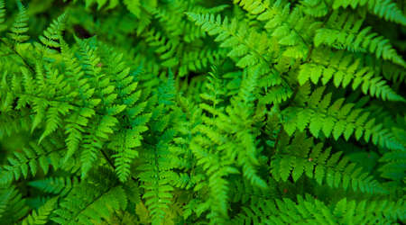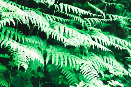green fern leaves petals background. Vibrant green foliage. Tropical leaf. Exotic forest plant. Botany concept. Ferns jungles close up. jungle atmosphere and calm zen meditation