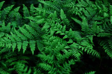 Natural environment pattern of fern leaves dense green grass in siberia forest