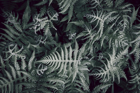 Dark green fern leaves. Fern leaf pattern. Tropical foliage. Natural abstract wallpaper. Nature background
