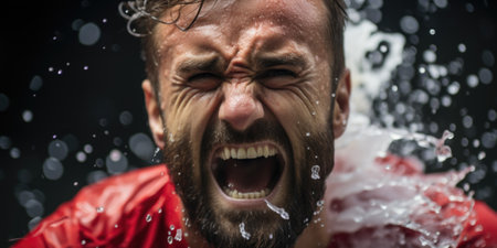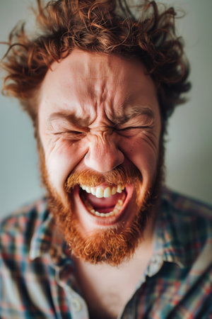 A powerful image capturing the raw anger and intense scream of a man.
