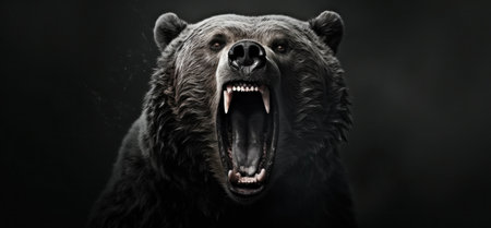 A snarling bear with bared teeth, dark background, intense and fierce expression