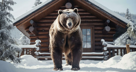 Brown bear in winter forest. Dangerous animal in natural habitat. Wildlife scene
