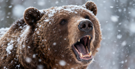 Roaring brown bear bear wildlife mammal fur nature forest snow cold aggressive