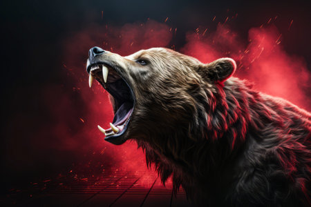 roaring bear on red smoke background, stock market, cryptocurrency. Concept financial investment.