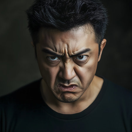 Intense expression of anger in a dramatic portrait.