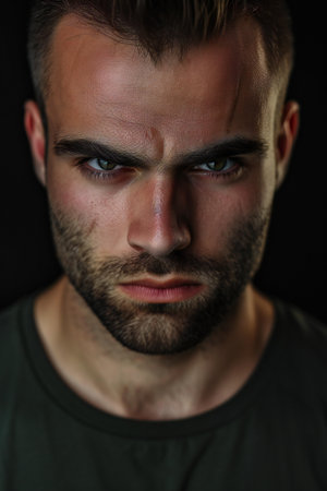 menacing stern angry man portrait close