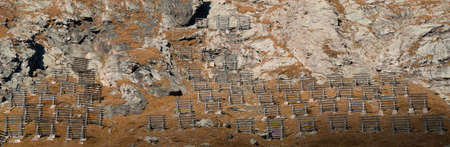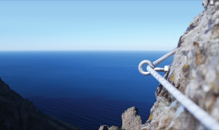 Steel Wire Cable Leading Up a Climbing Path on a Stony Mountain Cliff