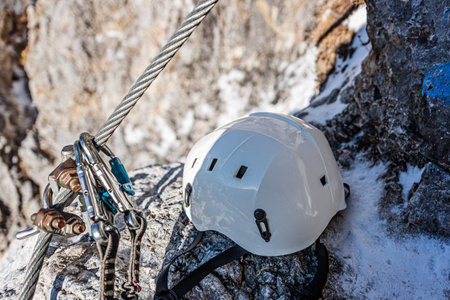 climber on via ferrata or klettersteig in Italy or Austria dolomit