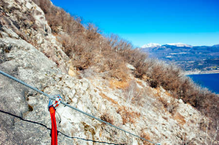 artificial climbing mountain route traced to the mountains of Lake Maggiore, Ferrata called the Picasass,