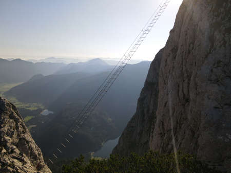One of the most famous via ferratas in the world. The via ferrata on Donnerkogel in Austria. A ladder to the other side of the mountain. extreme
