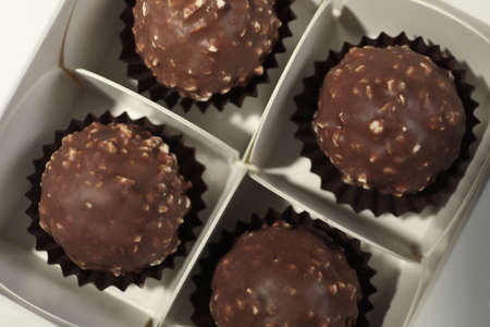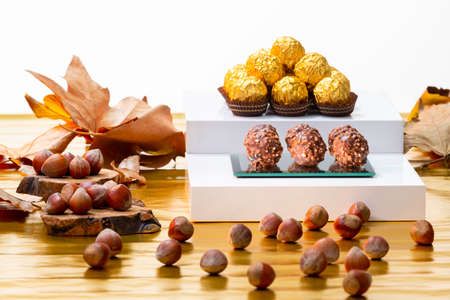 Beautiful arrangement of tempting chocolate and hazelnut sweets. Chocolate confectionery concept.