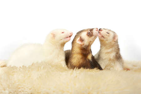 two small animal rodent ferret on a white background