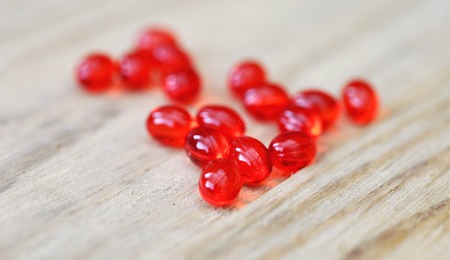 Handful with omega pills, healthy fats, vitamin E. Fish vitamin D