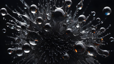 Close up ferrofluid spikes under magnetic field glossy black dramatic wallpaper background representing science texture detail suitable for abstract design